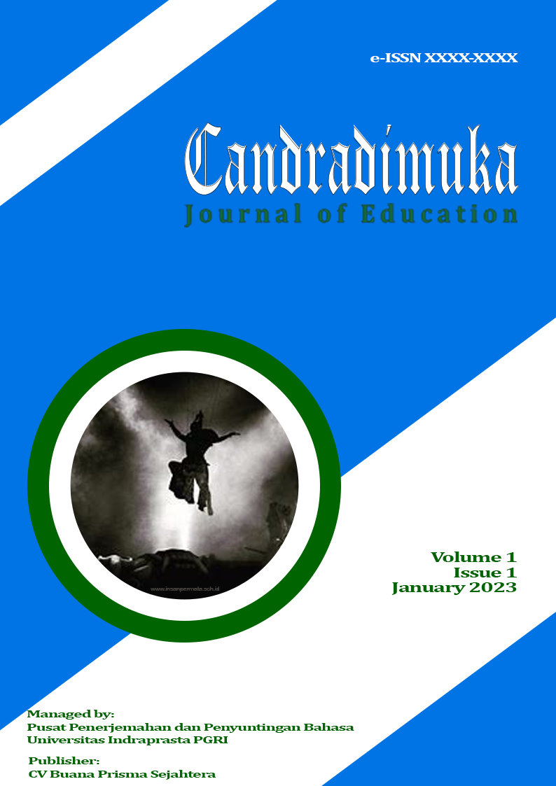 | Candradimuka: Journal of Education, e-ISSN 2985-4431, publishes multidisciplinary education articles (quantitative or qualitative). Candradimuka will be published for the first time in January 2023 in online version by Pusat Penerjemahan dan Penyuntingan Bahasa Universitas Indraprasta PGRI in collaboration with CV Buana Prisma Sejahtera. The frequency of publication is twice a year, namely in January and July. Candradimuka: Journal of Education accepts articles that written in English and Indonesia, but will be published in Englishand Indonesia.